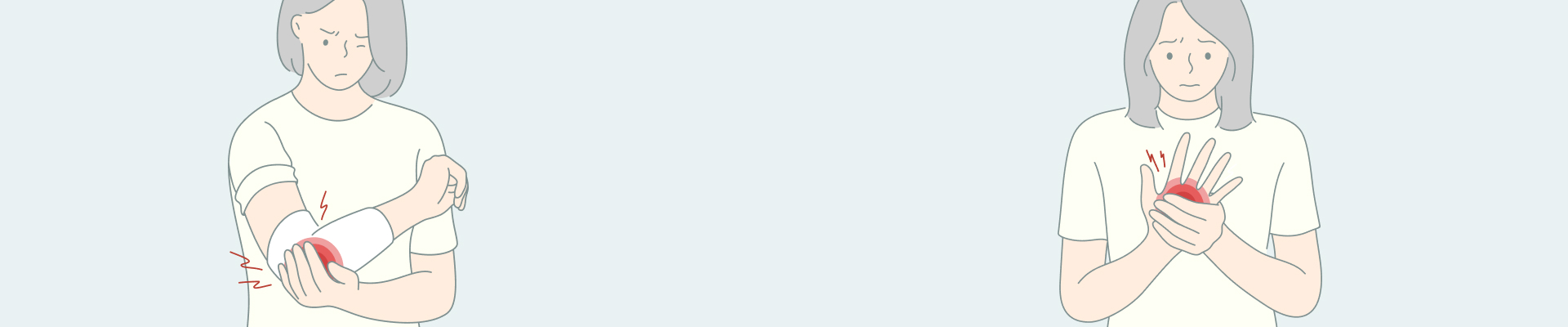 | 통증이 나타나는 팔꿈치 바깥쪽을 누르면 통증이 크게 나타난다. | 손잡이를 돌리거나 걸레를 짤 때 팔꿈치 안쪽에서 통증이 느껴진다. | |